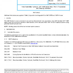 This SAE Standard covers procurement and ordering information for hose assemblies using SAE Standard J517 100R Series hoses and connectors specified in SAE Standard J516 or all parts of ISO 12151 for use in hydraulic systems using petroleum based hydraulic fluids.