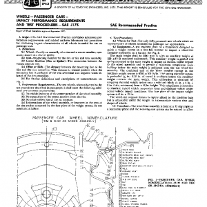 This SAE Recommended Practice establishes minimum performance requirements and related uniform laboratory test procedures for evaluating impact characteristics of all wheels intended for use on passenger cars.
