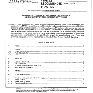 RECOMMENDED PRACTICE FOR ELECTRIC AND HYBRID ELECTRIC VEHICLE BATTERY SYSTEMS CRASH INTEGRITY TESTING