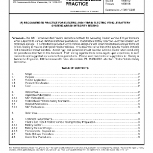 RECOMMENDED PRACTICE FOR ELECTRIC AND HYBRID ELECTRIC VEHICLE BATTERY SYSTEMS CRASH INTEGRITY TESTING