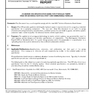 This HIR provides guidance defining the hydraulic system requirements and for preparing a detailed specification for a pumping component. The user can follow this document to set forth the pump environmental and performance considerations, establish service life and reliability goals, and define specific evaluation tests in order to qualify it for advanced marine vehicle applications.