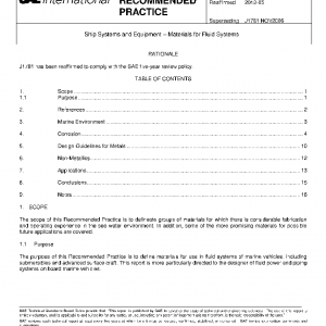 The scope of this Recommended Practice is to delineate groups of materials for which there is considerable fabrication and operating experience in the sea water environment. In addition, some of the more promising materials for possible future applications are covered.
