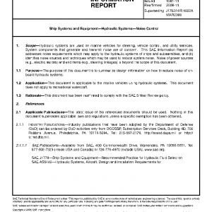 Hydraulic systems are used on marine vehicles for steering, vehicle control, and utility services. System components that generate and transmit noise are of concern. This SAE Information Report (a) addresses noise requirements which may apply to the hydraulic systems of ships and submersibles, and (b) identifies noise sources and techniques which may be used to reduce system noise. Noise of power sources (e.g., electric motors) and end items (e.g., steering linkages) is beyond the scope of this document.