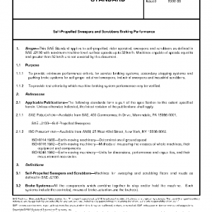 This SAE Standard applies to self-propelled, rider operated, sweepers and scrubbers as defined in SAE J2130 with maximum machine level surface speeds up to 32 km/h. Machines capable of speeds equal to and greater than 32 km/h are not covered by this document.