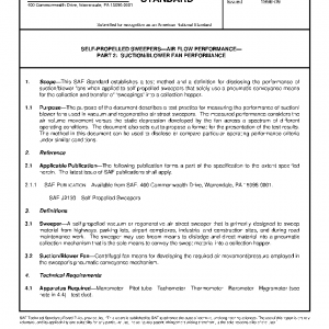This SAE Standard establishes a test method and a definition for disclosing the performance of suction/blower fans when applied to self-propelled sweepers that solely use a pneumatic conveyance means for the collection and transfer of “sweepings” into a collection hopper.
