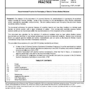 Recommended Practice for Packaging of Electric Vehicle Battery Modules