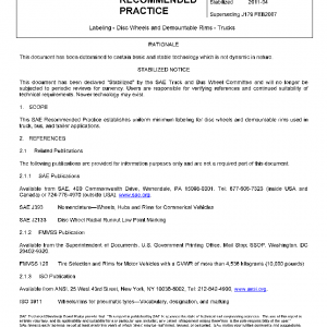 This SAE Recommended Practice establishes uniform minimum labeling for disc wheels and demountable rims used in truck, bus, and trailer applications.