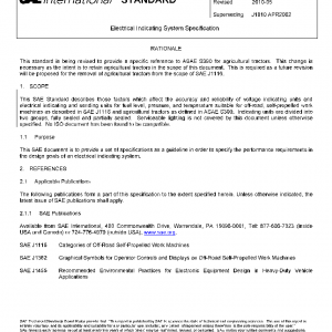 This SAE Standard describes those factors which affect the accuracy and reliability of voltage indicating units and electrical indicating and sending units for fuel level, pressure, and temperature suitable for off-road, self-propelled work machines as described in SAE J1116 and agricultural tractors as defined in ASAE S390. Indicating units are divided into two groups, fully sealed and partially sealed. Serviceable lighting is not covered by this document unless otherwise specified. No ISO document has been found to be compatible.