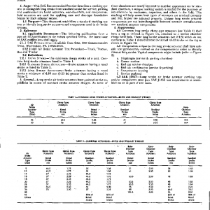 This SAE Recommended Practice describes a marking system to distinguish long stroke from standard stroke for service, parking and combination air brake actuators, roto-chambers, and components. Said actuators are used for applying cam and disc-type foundation brakes by slack adjuster means.
