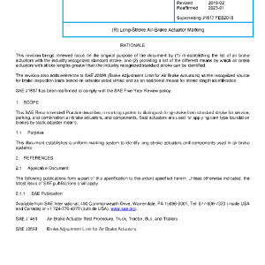 This SAE Recommended Practice describes a marking system to distinguish long-stroke from standard stroke for service, parking, and combination air-brake actuators, and components. Said actuators are used for applying cam type foundation brakes by slack adjuster means.