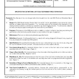 This SAE Recommended Practice identifies and defines the specifications most commonly used to describe articulated rubber-tired forwarders. The illustrations used are not intended to be descriptive of any existing machine or dictate a combination needed for a particular logging situation. The dimensions indicated are basic and may be supplemented by the individual machine manufacturer.