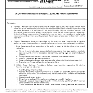 UNIFORM REFERENCE AND DIMENSIONAL GUIDELINES FOR COLLISION REPAIR