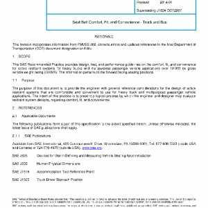 This SAE Recommended Practice provides design, test, and performance guidelines on the comfort, fit, and convenience for active restraint systems for heavy trucks and multipurpose passenger vehicle applications over 10 000 lbs gross vehicle weight rating (GVWR). The information pertains to the forward facing seating positions.