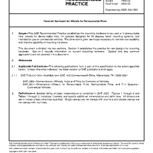 This SAE Recommended Practice establishes the mounting hardware to be used with demountable rims, wheels for demountable rims, rim spacers designed for 28 degrees bevel mounting systems, and intended for use on commercial vehicles. The dimensions given are those necessary to maintain serviceability and interchangeability of mounting hardware.