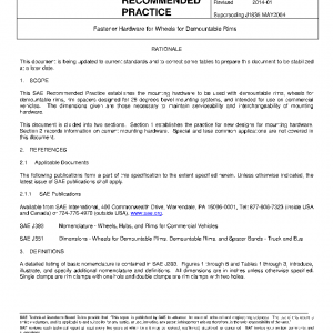 This SAE Recommended Practice establishes the mounting hardware to be used with demountable rims, wheels for demountable rims, rim spacers designed for 28 degrees bevel mounting systems, and intended for use on commercial vehicles. The dimensions given are those necessary to maintain serviceability and interchangeability of mounting hardware.