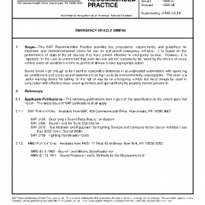 This SAE Recommended Practice provides test procedures, requirements, and guidelines for electronic and electromechanical sirens for use on authorized emergency vehicles. It is based on the performance of state-of-the-art devices that have proven effective in emergency service. However, it is important for the user to understand that such devices will not necessarily be heard by the drivers of every vehicle under all conditions in time to permit all drivers to take appropriate action.