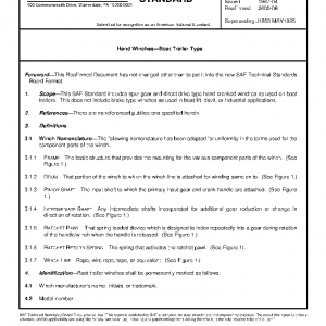 This SAE Standard includes spur gear and direct drive type hand-cranked winches as used on boat trailers. This does not include brake type winches as used in boat lift, davit, or industrial applications.