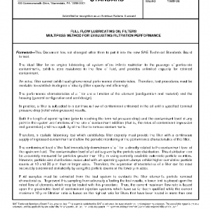 This standard establishes a multipass filtration performance test with continuous contaminant injection for lubricating oil filter elements.