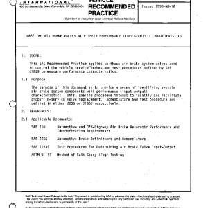 This SAE Recommended Practice applies to those air brake system valves used to control the vehicle service brakes and test procedures defined by SAE J1859 to measure performance characteristics.