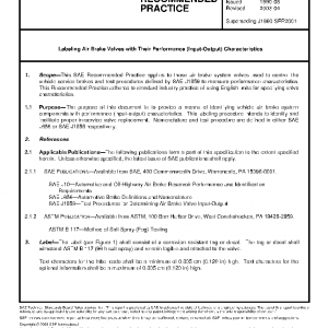 This SAE Recommended Practice applies to those air brake system valves used to control the vehicle service brakes and test procedures defined by SAE J1859 to measure performance characteristics. This Recommended Practice adheres to standard industry practice of using English units for specifying valve characteristics.
