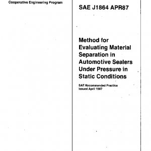 This SAE Recommended Practice sets forth a method for measuring pressure induced separation in automotive sealers and determining the likelihood of equipment failure due to this separation, also known as “caking”.