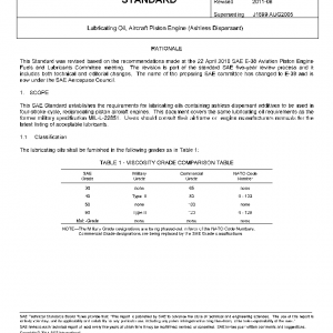 This SAE Standard establishes the requirements for lubricating oils containing ashless dispersant additives to be used in four-stroke cycle, reciprocating piston aircraft engines. This document covers the same lubricating oil requirements as the former military specification MIL-L-22851. Users should consult their airframe or engine manufacturers manuals for the latest listing of acceptable lubricants.