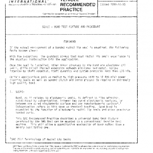 This SAE Recommended Practice describes a universal bond test fixture developed by the RMA that can be mounted to a conventional tensile test machine. This will allow a quantitative evaluation of bond rather than a merely qualitative one.