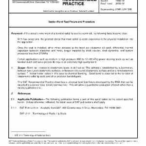 This SAE Recommended Practice describes a universal bond test fixture developed by the RMA that can be mounted to a conventional tensile test machine. This will allow a quantitative evaluation of bond rather than a merely qualitative one.