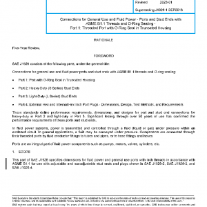 This part of SAE J1926 specifies dimensions for fluid power and general use ports with inch threads in accordance with ASME B1.1 for use with adjustable and nonadjustable stud ends and plugs shown in SAE J1926-2, SAE J1926-3, and SAE J1926-4.