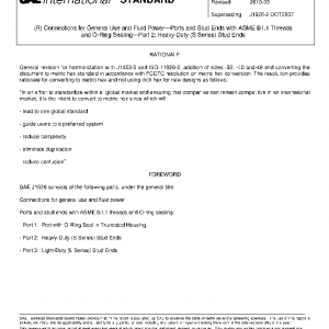This part of SAE J1926 specifies dimensions, performance requirements, and test procedures for adjustable and nonadjustable heavy-duty (S series) stud ends with ASME B1.1 threads for use in fluid power and general applications and the O-rings used with them that are currently not listed in SAE J515.