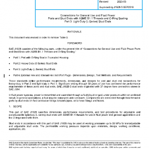 This part of SAE J1926 specifies dimensions, performance requirements, and test procedures for adjustable and nonadjustable light-duty (L series) stud ends with ASME B1.1 threads for use in fluid power and general applications and the O-rings used with them.