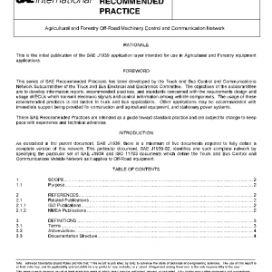 These Recommended Practices are intended for light and heavy duty agricultural and forestry vehicles used primarily off-road as well as appropriate stationary applications which use vehicle derived components. Vehicles of interest include, but are not limited to: agricultural equipment and implements and forestry harvesting equipment.