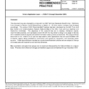 As described in the parent document, SAE J1939, there are a minimum of seven documents required to fully define a complete version of this network. This particular SAE Recommended Practice, SAE J1939-71, describes an Application Layer for vehicle use.