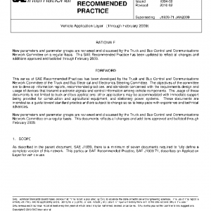 As described in the parent document, SAE J1939, there is a minimum of seven documents required to fully define a complete version of this network. This particular SAE Recommended Practice, SAE J1939-71, describes an Application Layer for vehicle use.