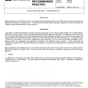 As described in the parent document, SAE J1939, there is a minimum of seven documents required to fully define a complete version of this network. This particular SAE Recommended Practice, SAE J1939-71, describes an Application Layer for vehicle use.