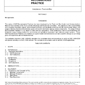 The purpose of these compliance procedures is to generate one or more test documents that outline the tests needed to assure that an ECU that is designed to operate as a node on a SAE J1939 network would do so correctly. SAE does not certify devices and these tests and their results do not constitute endorsement by SAE of any particular device. These tests are presented to allow testing of a Device to determine self-compliance by the manufacturer of a device. The manufacturer can use its record of what procedures were run successfully to show the level of compliance with SAE J1939.