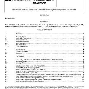 The purpose of this Recommended Practice is to verify that vehicles and/or components are capable of communicating a minimum subset of information, in accordance with the diagnostic test modes specified in SAE J1939-73: Diagnostic Services.