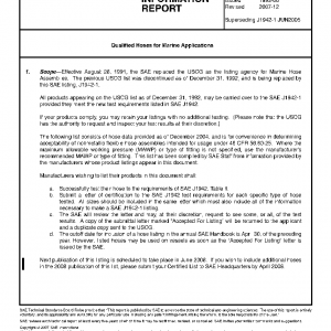 Effective August 28, 1991, the SAE replaced the USCG as the listing agency for Marine Hose Assemblies. The previous USCG list was discontinued as of December 31, 1992, and is being replaced by this SAE listing, J1942-1.
