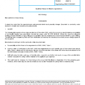 The cutoff date for inclusion of a hose listing in the annual SAE Handbook is September 30 of the preceding year. However, listed hoses may be used on vessels as soon as the “Accepted for Listing” letter is issued by SAE.
