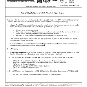 This SAE Recommended Practice provides the following for the windshield washer system for trucks, buses, and multipurpose vehicles with GVW of 4500 kg (10 000 lb) or greater: