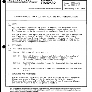 This SAE Standard specifies the nominal dimensions and tolerances which affect the interchangeability between companion flanges and mating parts. The flanges covered by this document are designated type A and type S.