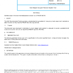 This SAE Recommended Practice provides a standardized test procedure for heavy-duty truck sleeper berth restraints to determine whether they meet the FMCSR 393.76(h) requirements.