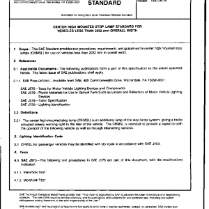 This SAE Standard provides test procedures, requirements, and guidelines for center high mounted stop lamps (CHMSL) for use on vehicles less than 2032 mm in overall width.