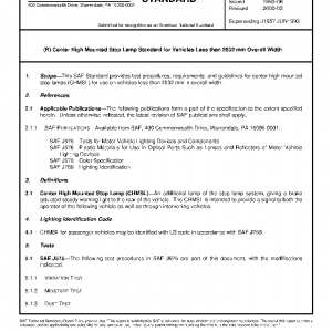 This SAE Standard provides test procedures, requirements, and guidelines for center high mounted stop lamps (CHMSL) for use on vehicles less than 2032 mm in overall width.