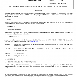 This SAE Standard provides test procedures, performance requirements, and guidelines for center high mounted stop lamps (CHMSL) for use on vehicles less than 2032 mm in overall width.