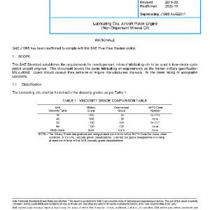 This SAE Standard establishes the requirements for nondispersant, mineral lubricating oils to be used in four-stroke cycle piston aircraft engines. This document covers the same lubricating oil requirements as the former military specification MIL-L-6082. Users should consult their airframe or engine manufacturers manuals for the latest listing of acceptable lubricants.
