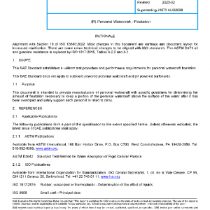 This SAE Standard establishes a uniform test procedure and performance requirements for personal watercraft floatation.