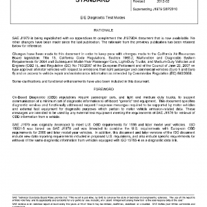 SAE J1979: the document is concerned with the definition of emissions-related diagnostic services (diagnostic test modes). It references SAE J1979-DA which contains all standardized data items like PIDs, Test Ids, Monitor IDs and InfoType IDs.