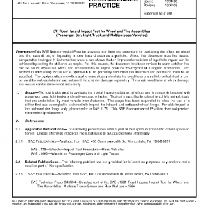 The test is designed to evaluate the frontal impact resistance of wheel and tire assemblies used with passenger cars, light trucks and multi-purpose vehicles. The test is specifically related to vehicle pothole tests that are undertaken by most vehicle manufacturers. The scope has been expanded to allow the use of a striker that can be angled to preferentially impact the inboard and outboard wheel flange. For side impact of the outboard rim flange only, please refer to SAE J175. This SAE Recommended Practice does not provide standards of performance.