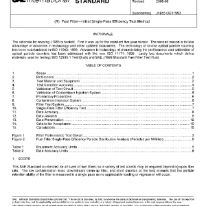 This SAE Standard is intended for all sizes of fuel filters, so a variety of test stands may be required depending upon flow rate. The low contamination level, downstream clean-up filter, and short duration of the test, ensures that the particle retention ability of the filter is measured in a single pass as no appreciable loading or regression will occur.